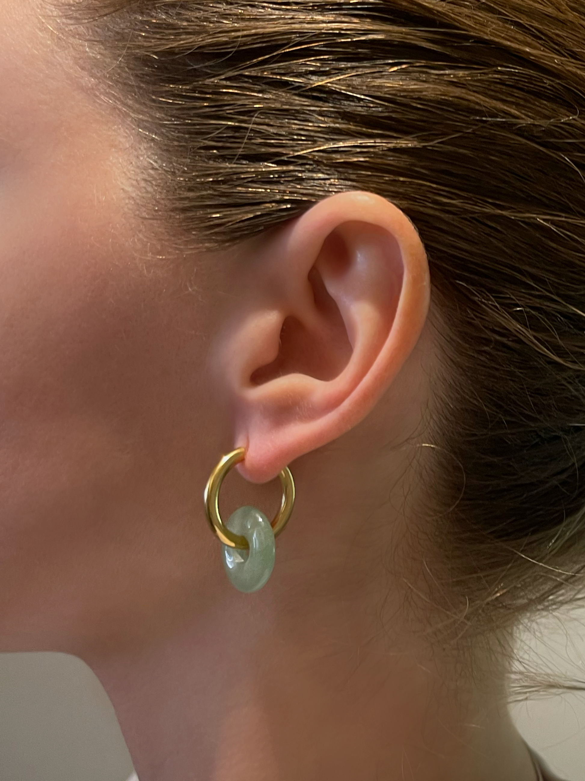 Están diseñadas con argollas de acero inoxidable delgadas y ultra livianas, y piedra natural aventurina verda. Argollas de 20mm.