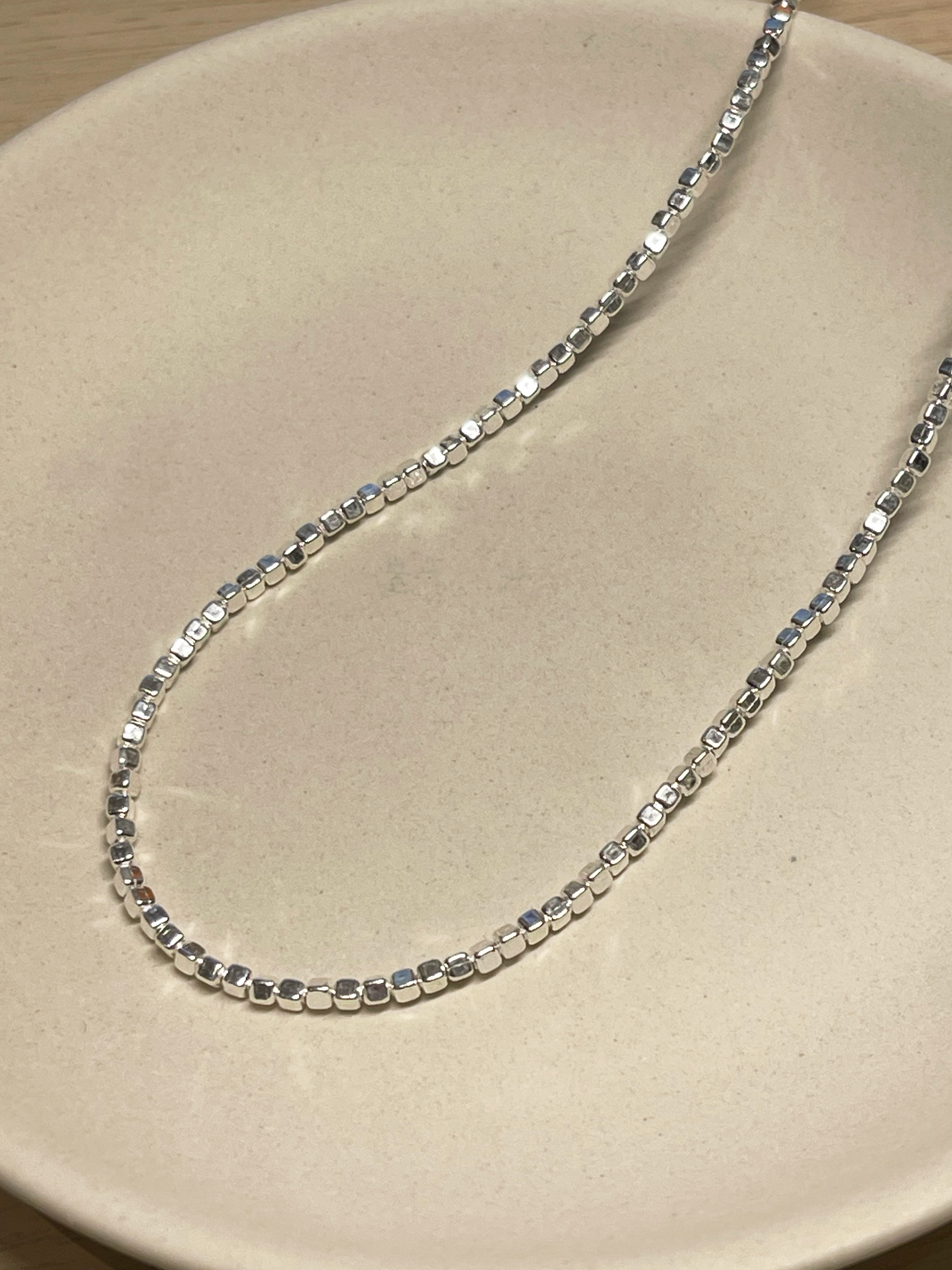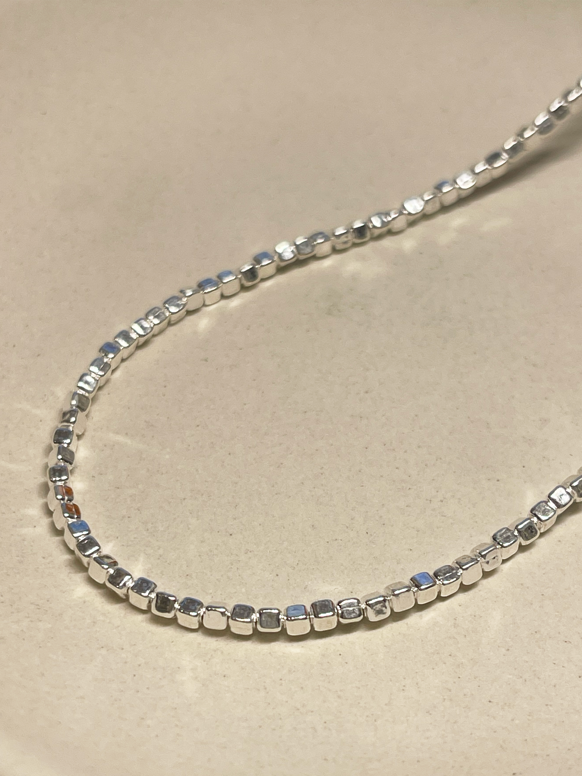 Collar con cubos en Plata 925 de 44 centímetros de largo con alargue, en un grosor de 1,5 milímetros.