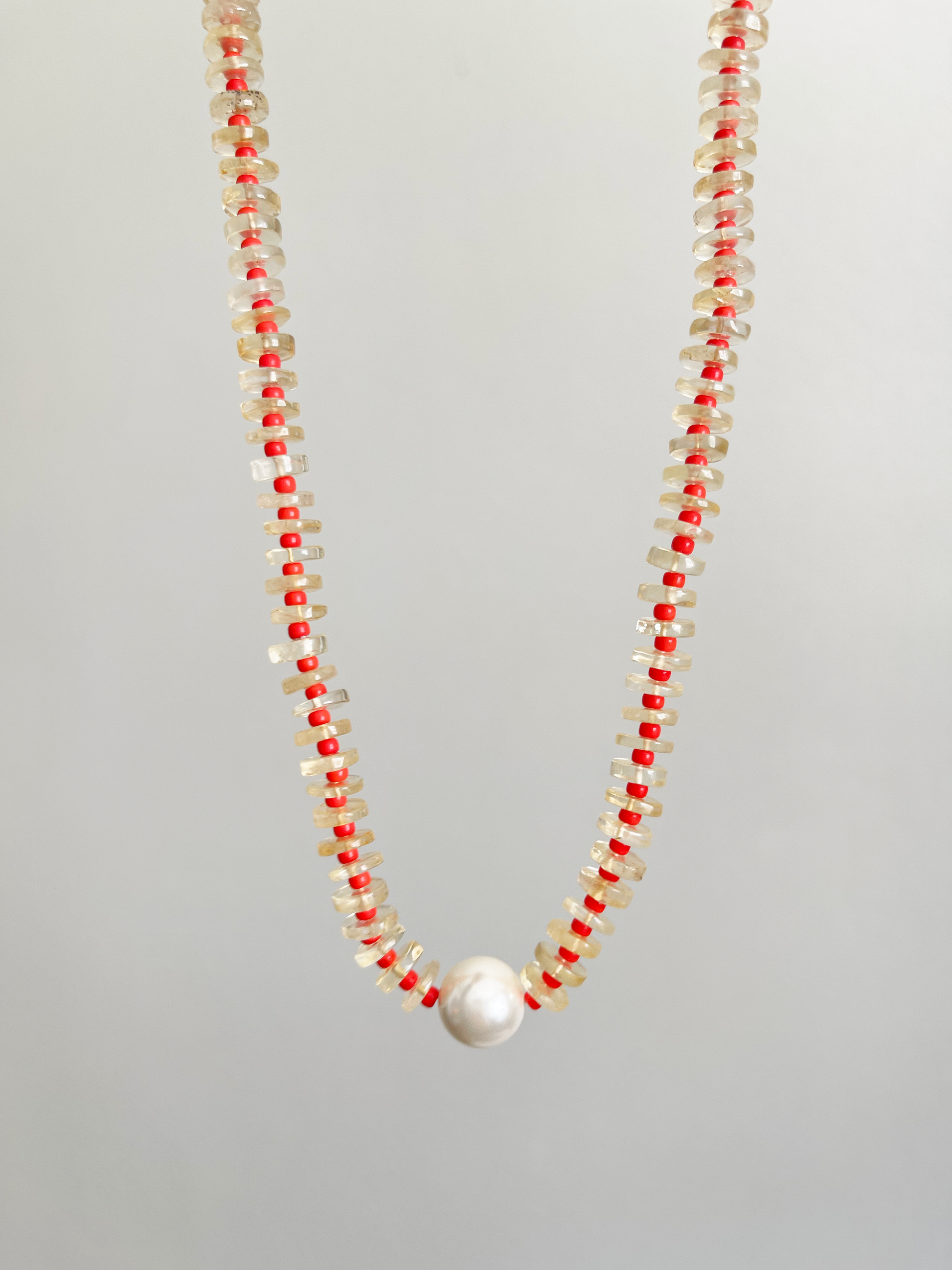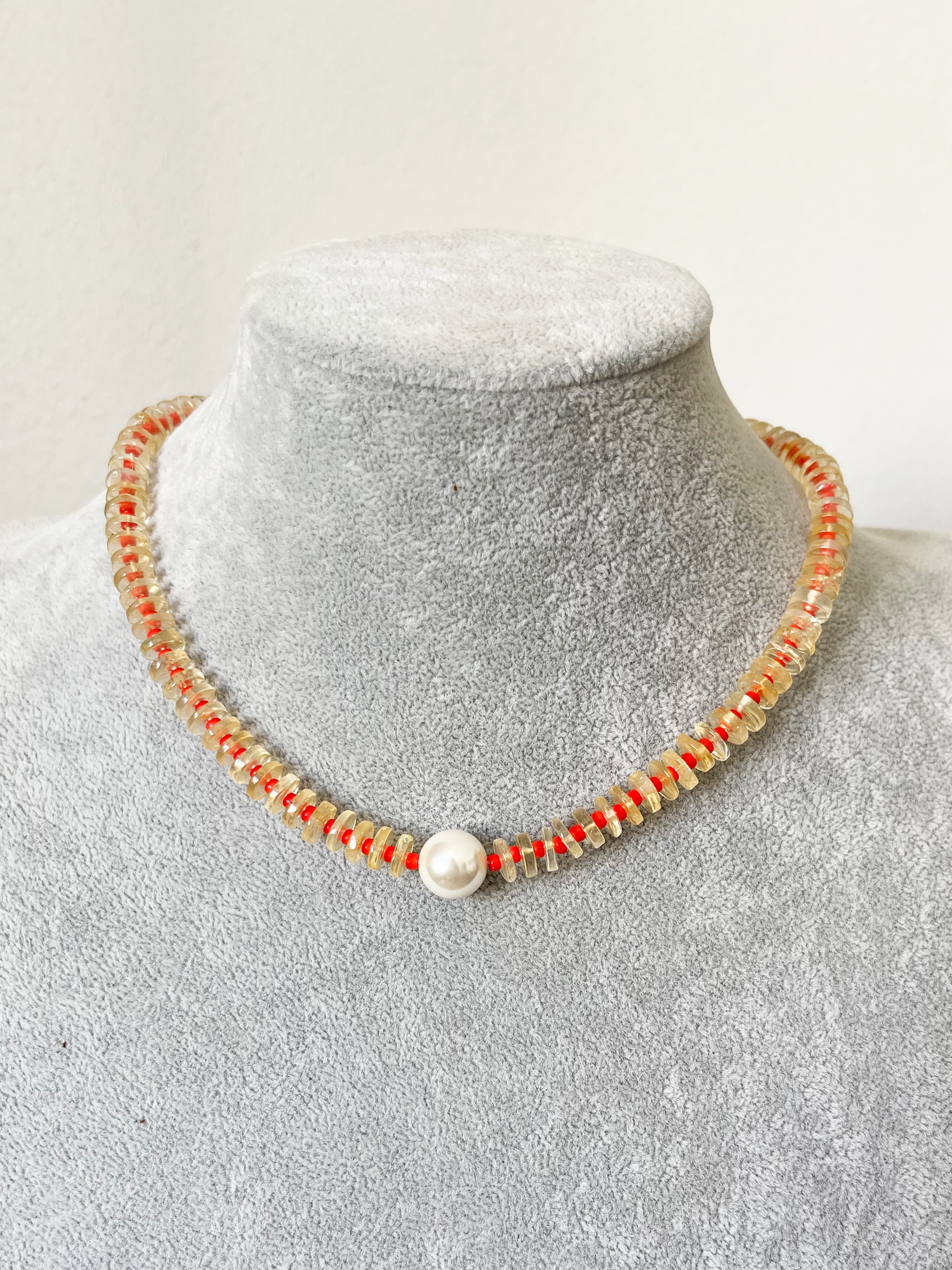 Todo los detalles de metal son en enchape oro 18k, y está enhebrado en hilo de seda como todos nuestros colgantes.