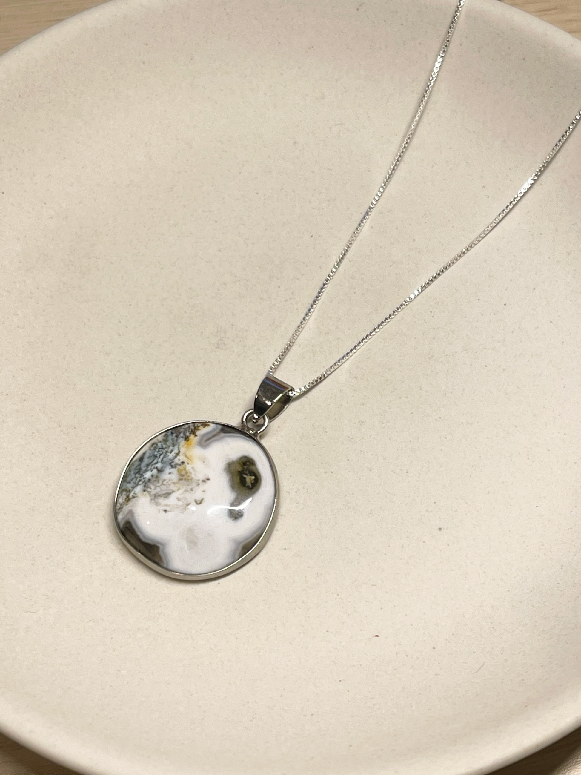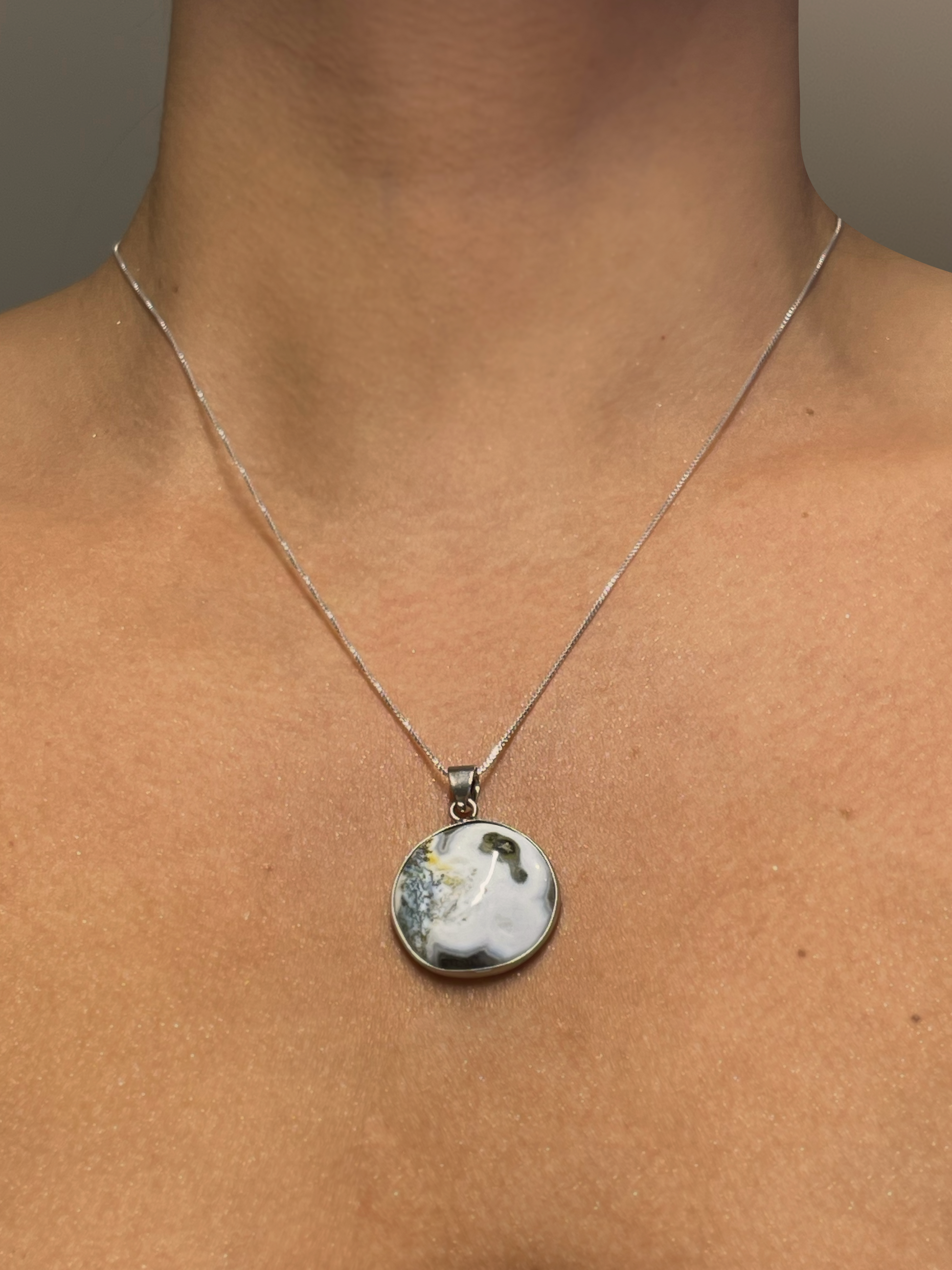Collar con dije de ágata de 2,5 centímetros aproximadamente, con cadena en Plata 925 de 45 centímetros de largo sin alargue.
