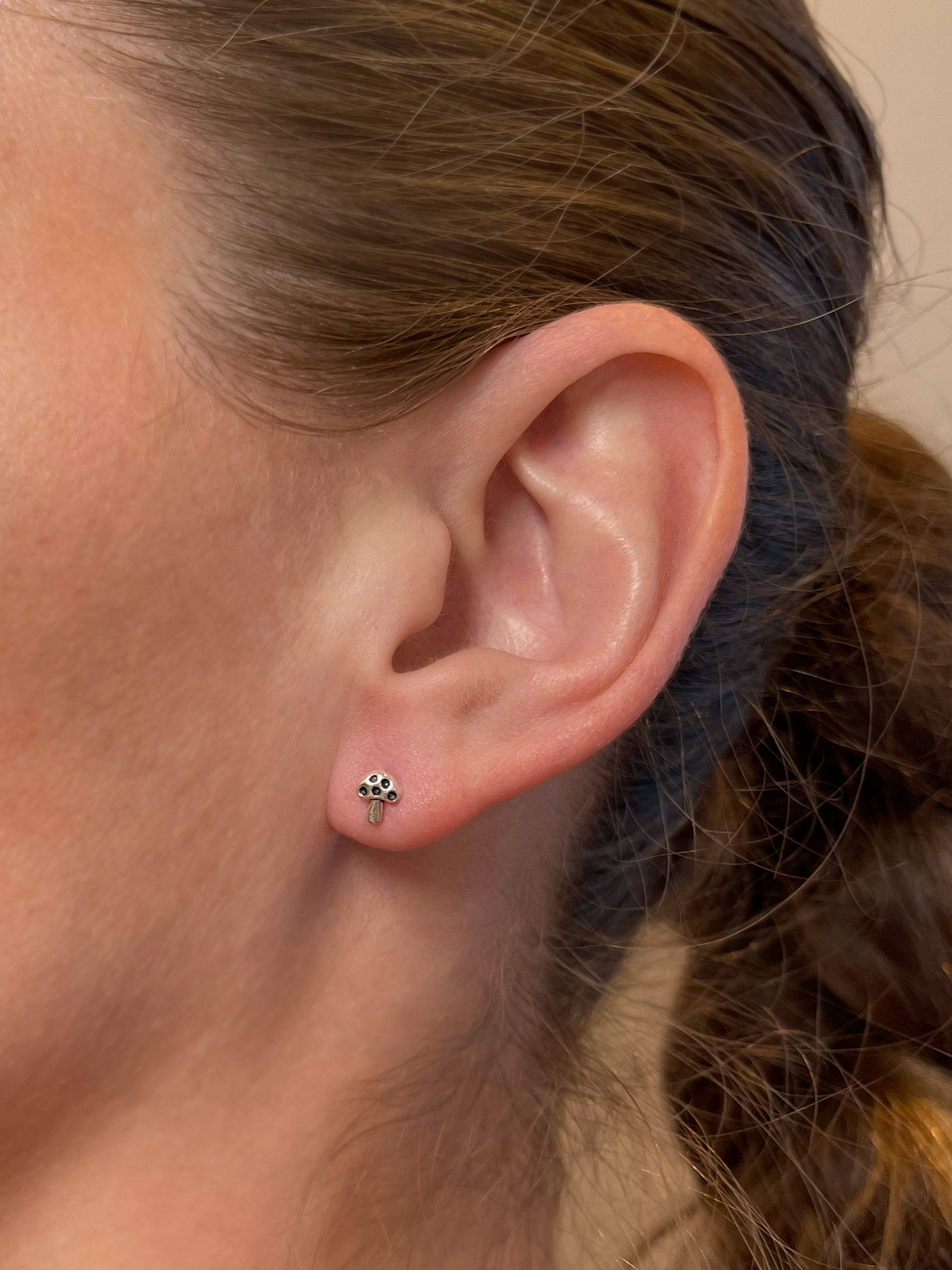 Este aro Stud en forma de hongo está diseñado en plata 925, y mide 5 milímetros.