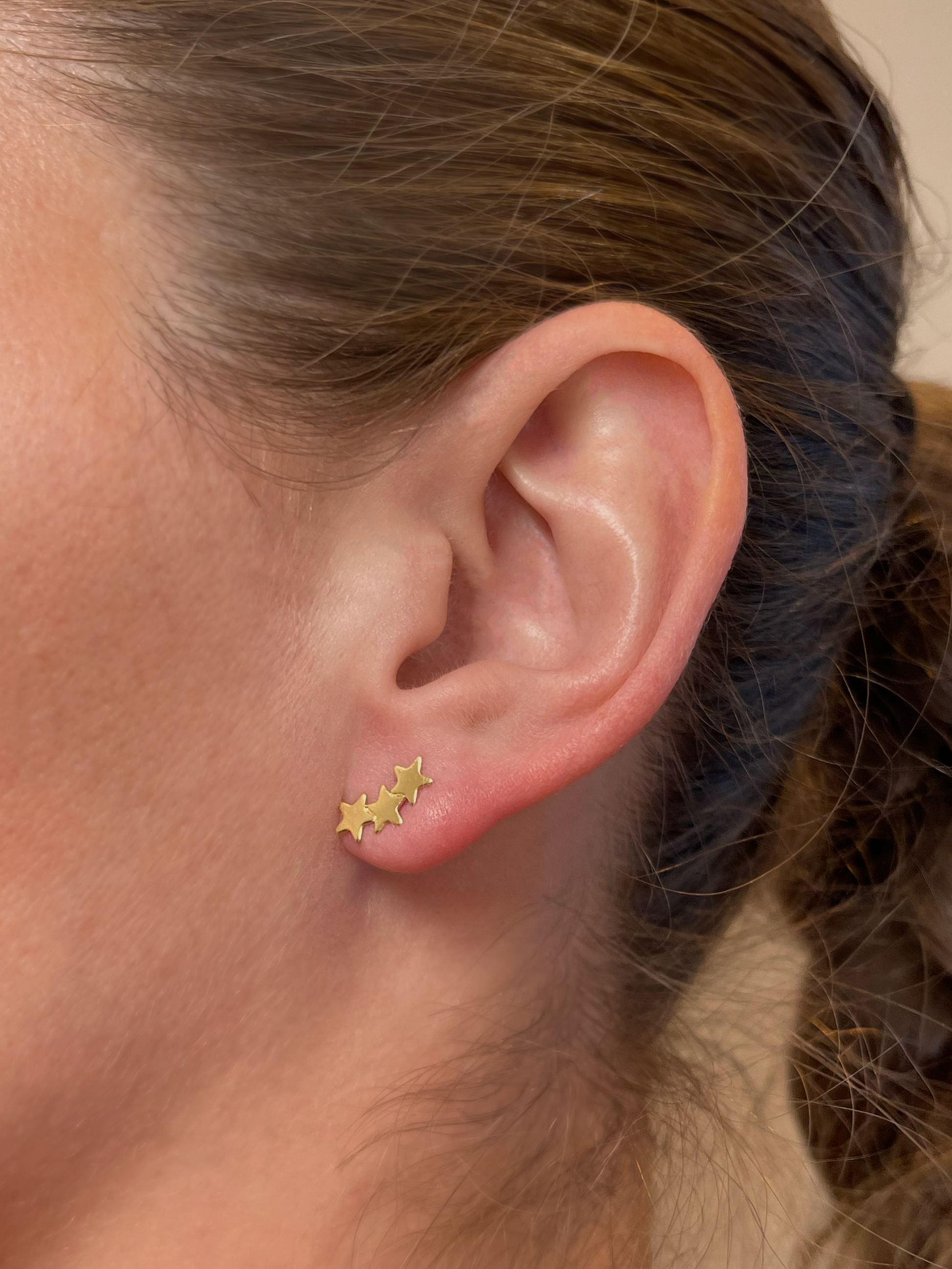 Este aro Stud trío de estrellas está diseñado en baño de oro 18k, y mide 12 milímetros.